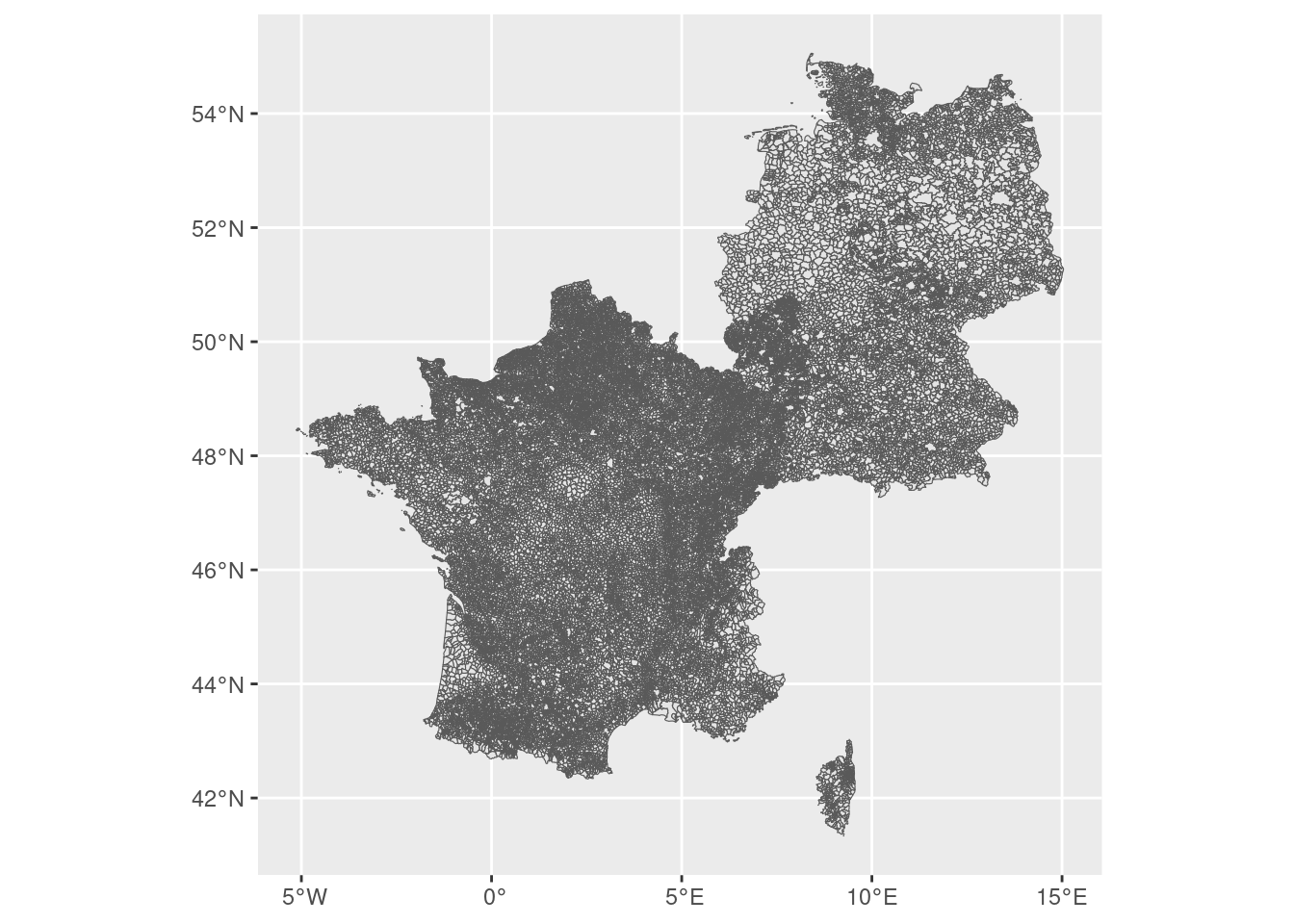 nuts3 <- giscoR::gisco_get_nuts(year ="2016",nuts_level =3,country =c("FR", "DE"),resolution ="03") |>select(nuts_3 = NUTS_ID)# Make sure CRS matches before joiningnuts3 <-st_transform(nuts3, st_crs(data))data <- data |>st_join(nuts3, largest=TRUE) |>mutate(nuts_2 =substr(nuts_3, 1, 4))